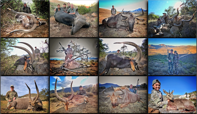 $9,790 for a 9 day safari, with 8 hunting days and 7 trophies (choice of 3 of the following: Cape Kudu, Black or Blue wildebeest, Gemsbuck, Red Hartebeest) PLUS choice of 1 of the following: White Springbuck or Black Springbuck, PLUS 1 Impala or Mountain Reedbuck, PLUS 1 Common Springbuck, PLUS 1 Blesbuck.